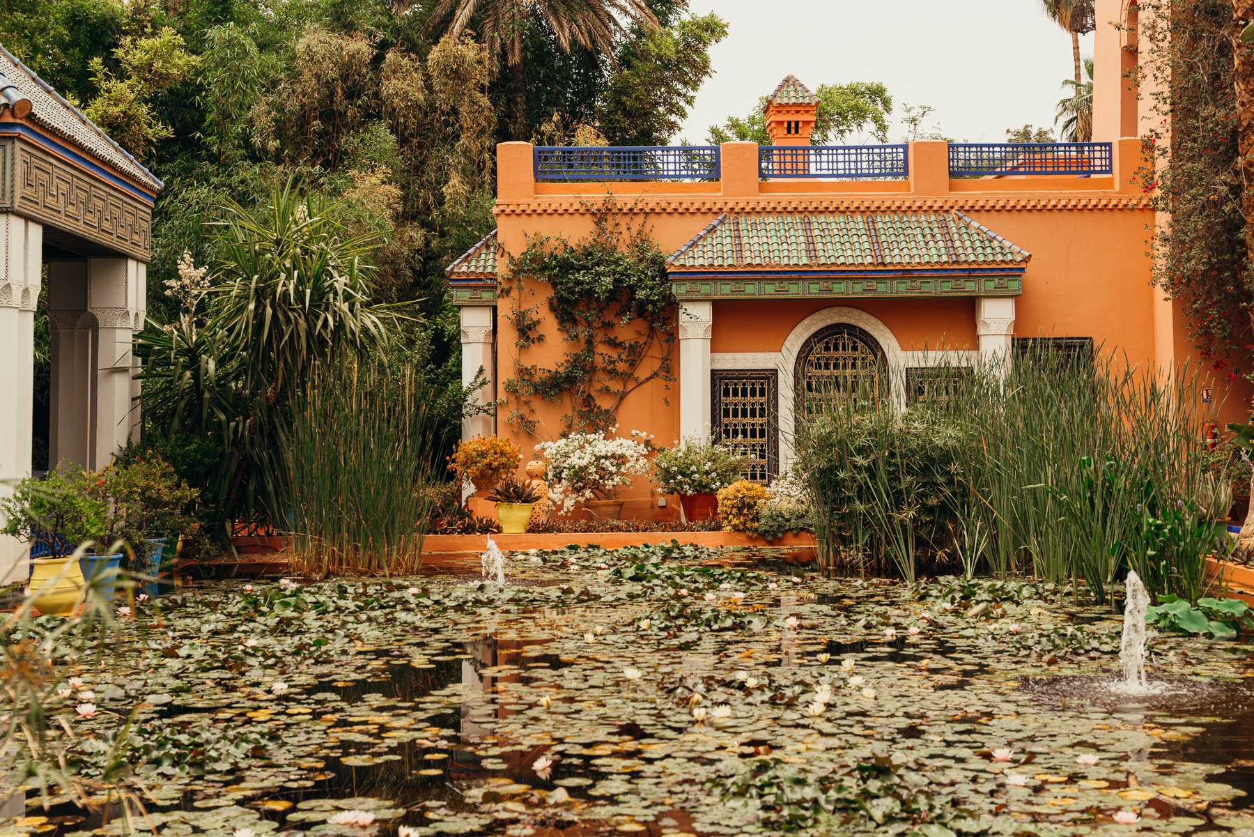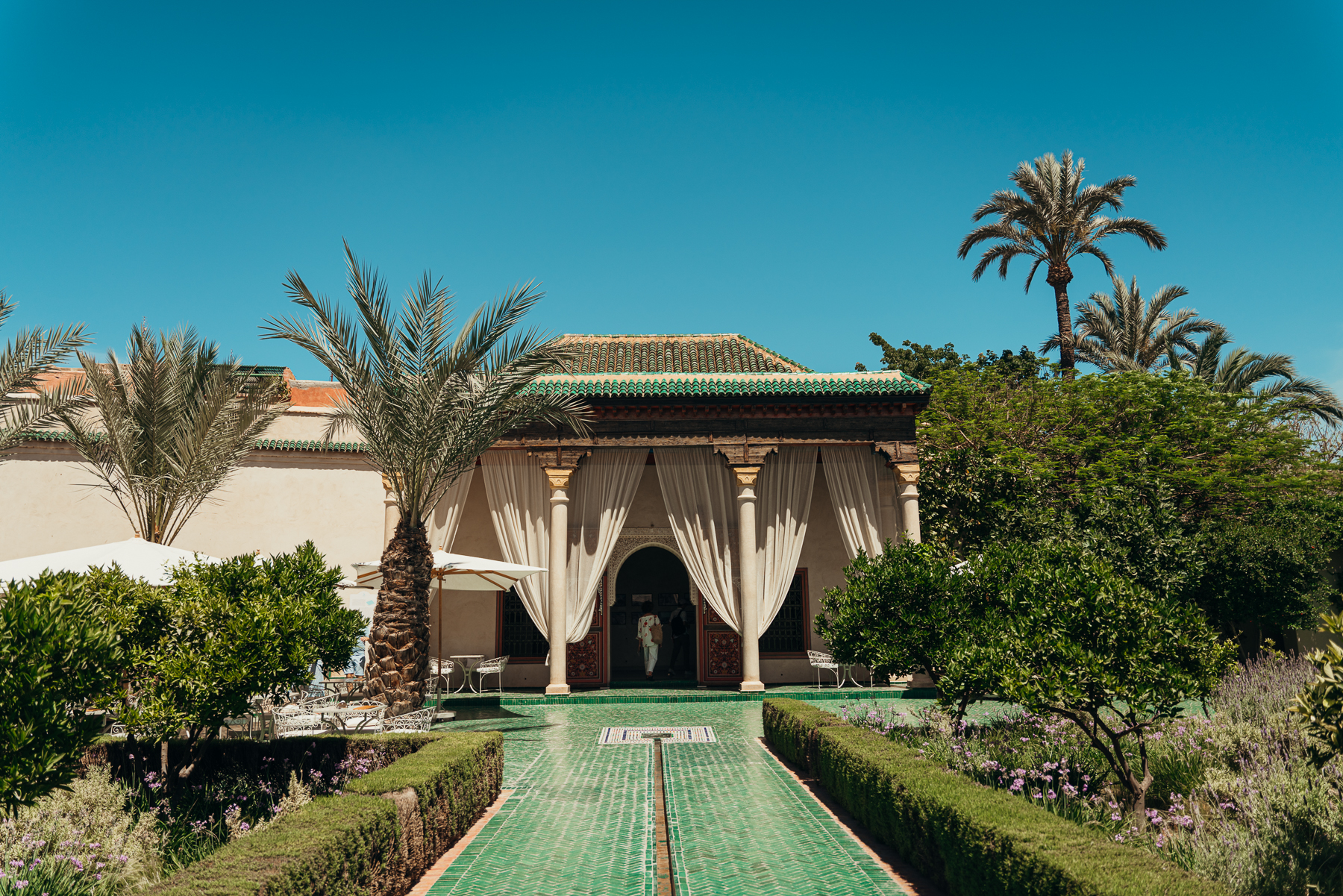 Por fuera de la medina también hay muchas cosas interesantes para hacer, una de las más famosas es visitar el Museo de Yves Saint-Laurent, el edificio es precioso y para los que les interesa la moda, vale la pena entrar a ver las exposiciones. Además, recomiendo comprar el tiquete completo que incluye la visita a Le jardín majorelle que queda al lado y son unos jardines preciosos diseñados y cultivados por el artista francés Jacques Majorelle durante casi 40 años. Después lo compraron Yves Saint-Laurent y Pierre Bergé y lo restauraron. Adentro se puede visitar el Museo Bereber que es chiquito y vale mucho la pena. El tiquete completo incluye las 3 cosas.