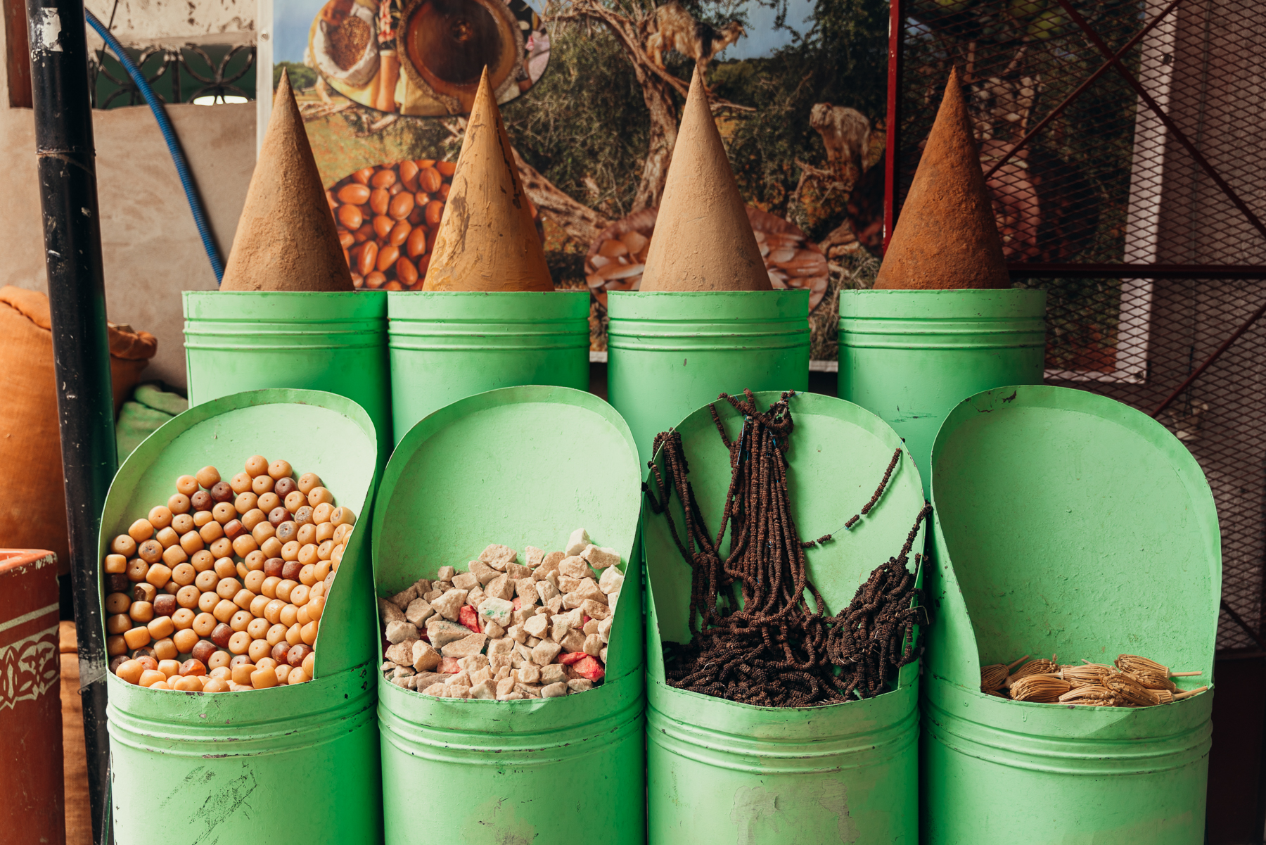 Una experiencia muy linda es visitar alguna de las farmacias tradicionales, en donde te explican todo tipo de usos para las especias, el aceite de argán, aceites esenciales, etc.. Nosotros visitamos varias pero mi favorita fue Koutoubia Herbal.