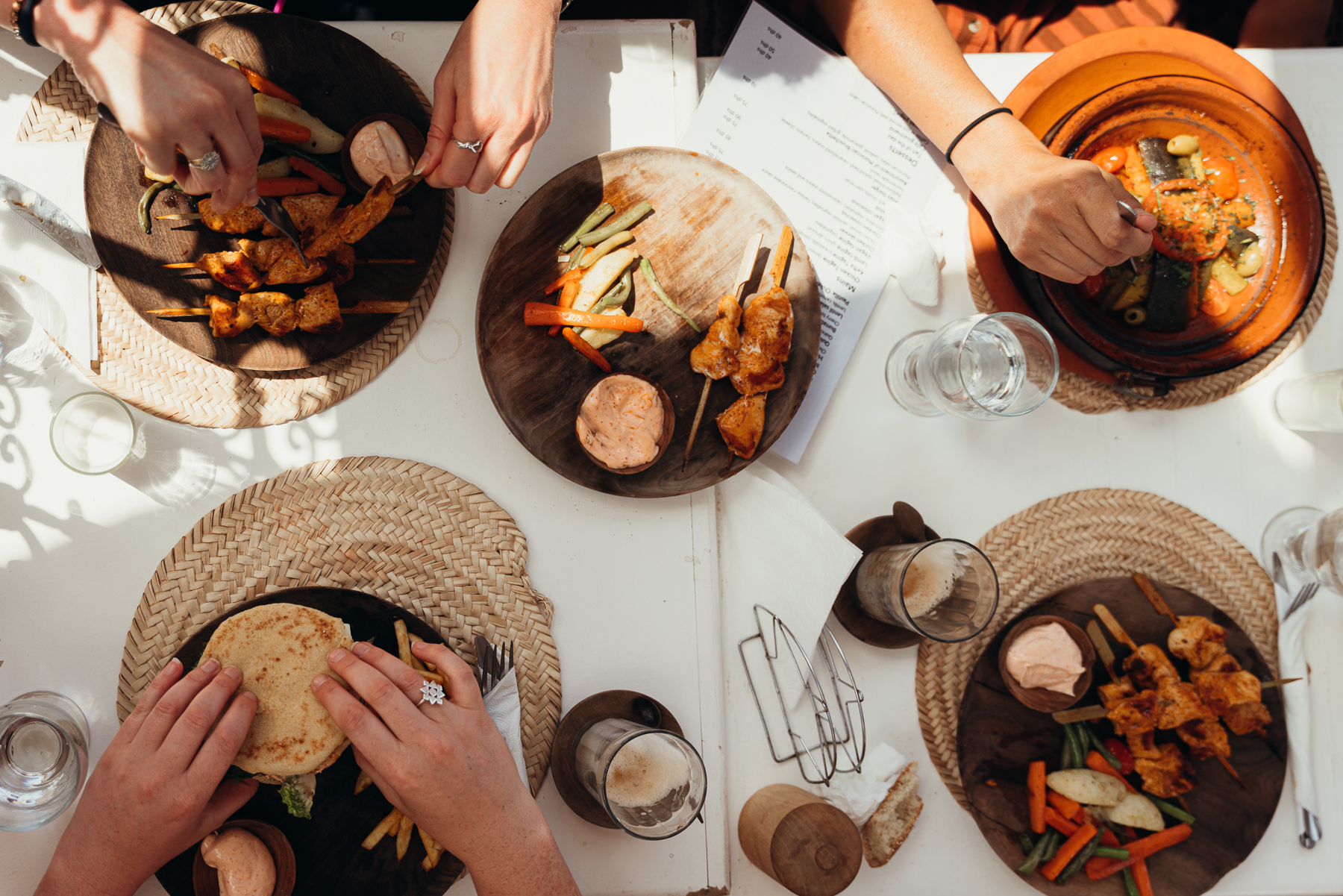 En la medina hay muy buenos restaurantes para almorzar y comer, tanto si quieren comida típica marroquí como tagine y couscous, como si quieren algo más liviano y están cansados de las especias. Aquí les dejo algunos de los que visitamos: