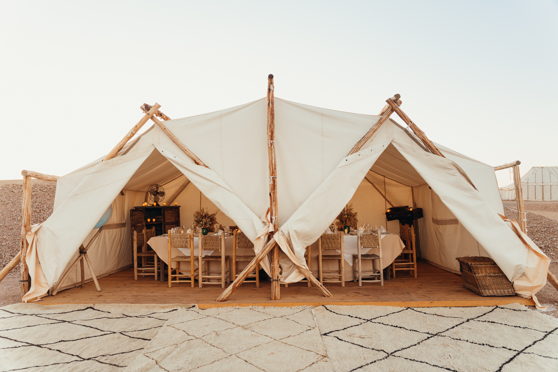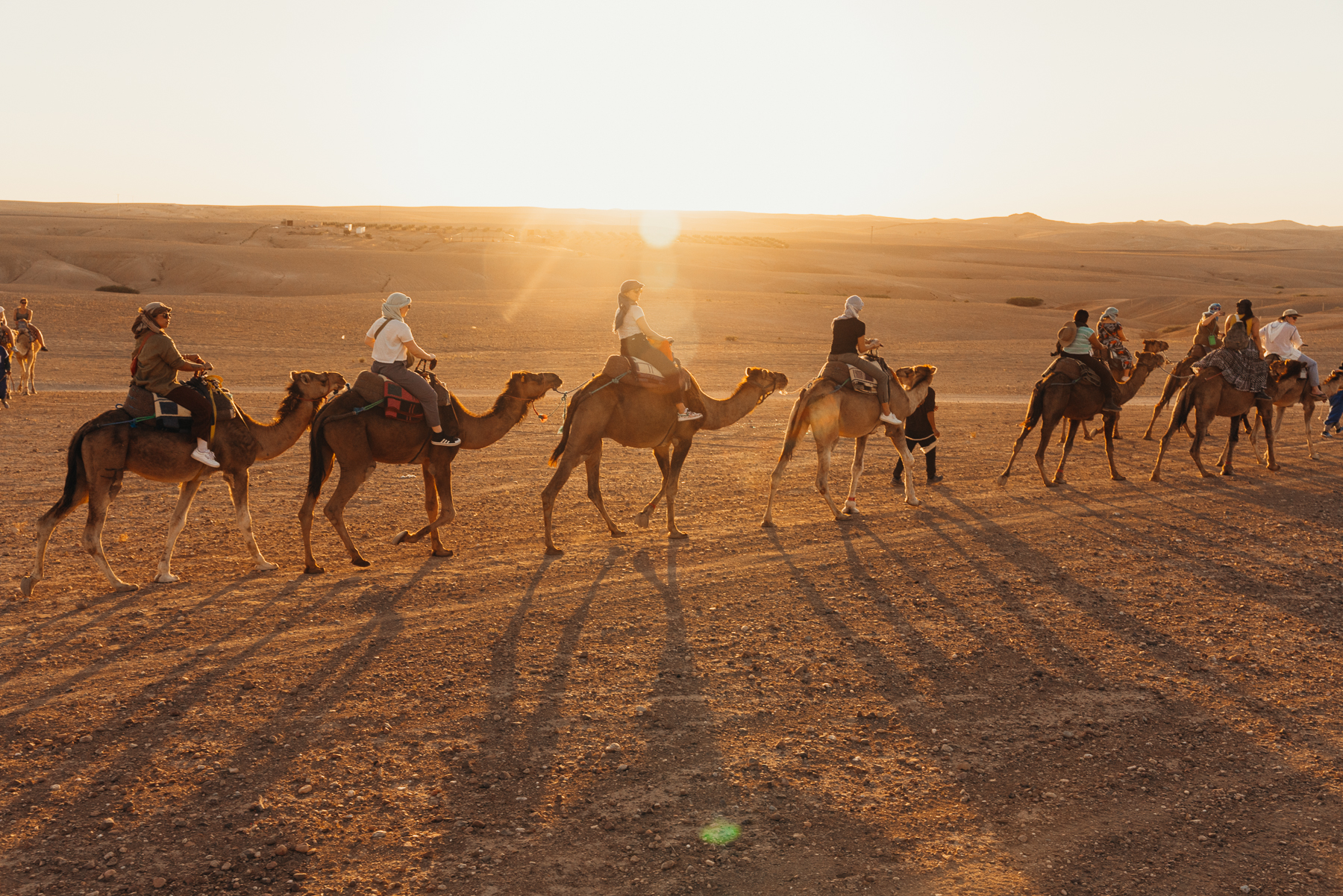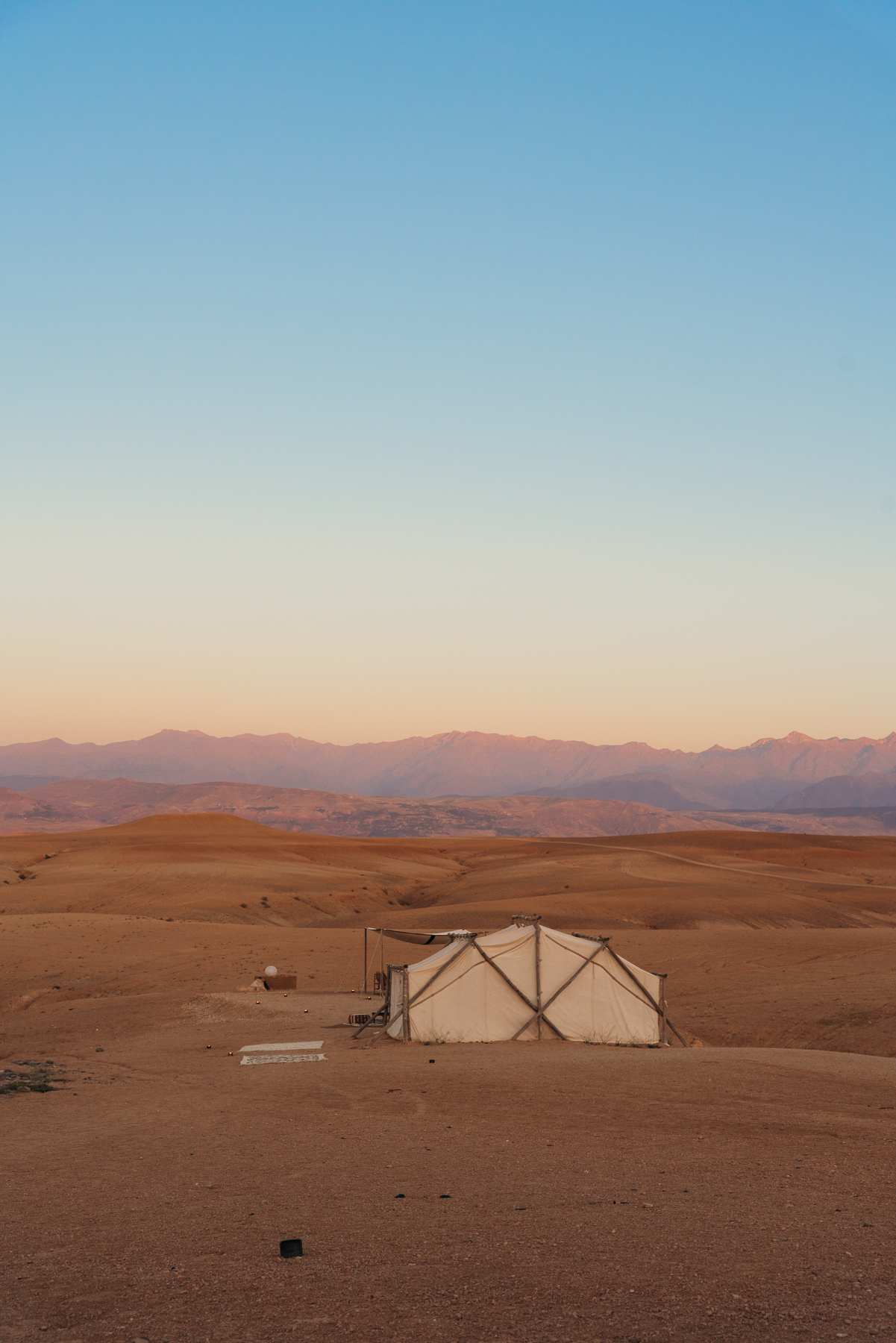 Otra experiencia que merece sacarle el tiempo es el viaje de 1 hora al Desierto de Agafay en donde hay muchas opciones de campamentos para pasar la noche en carpas lujosas con comida y acomodaciones excelentes. Nosotros no fuimos a pasar la noche pero si fuimos a hacer un paseo en camello y a cenar en una carpa bajo las estrellas una comida tradicional deliciosa con música tradicional marroquí.