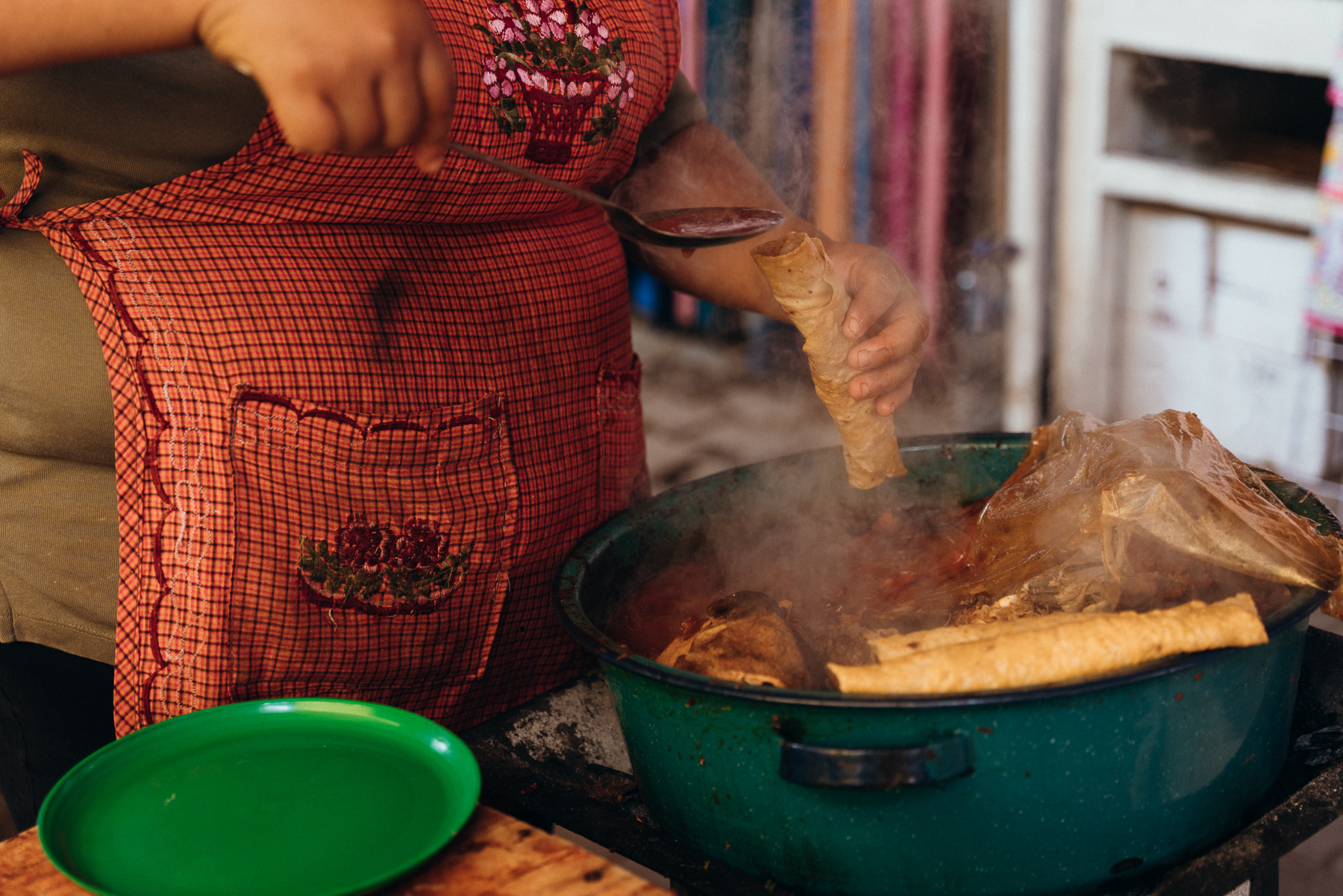 Yo fui dos veces y las dos fueron experiencias preciosas. La primera fue a visitar el taller y hogar de la familia de Christian Mendoza Ruiz. Maestro teñidor y tejedor, no se dejen engañar por su edad, Christian es muy joven pero viene de una tradición de varias generaciones por el lado de su papá y de su mamá de tejedores y teñidores de Teotitlán del Valle y oírlo hablar de su arte y oficio es absolutamente fascinante e inspirador.