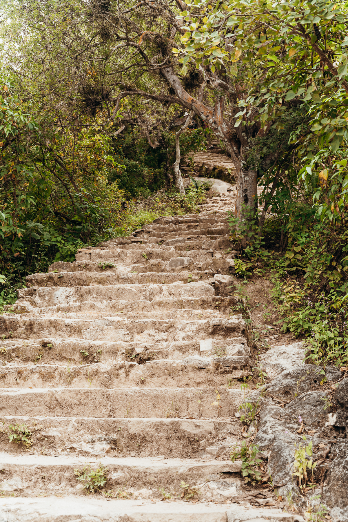 La caminada larga dura más o menos una hora y vale la pena porque ofrece la mejor vista de las cascadas porque se baja por escaleras casi hasta la la punta de la cascada más grande que tiene unas texturas increíbles, casi que parecen las alfombras de Teotitlán del valle.