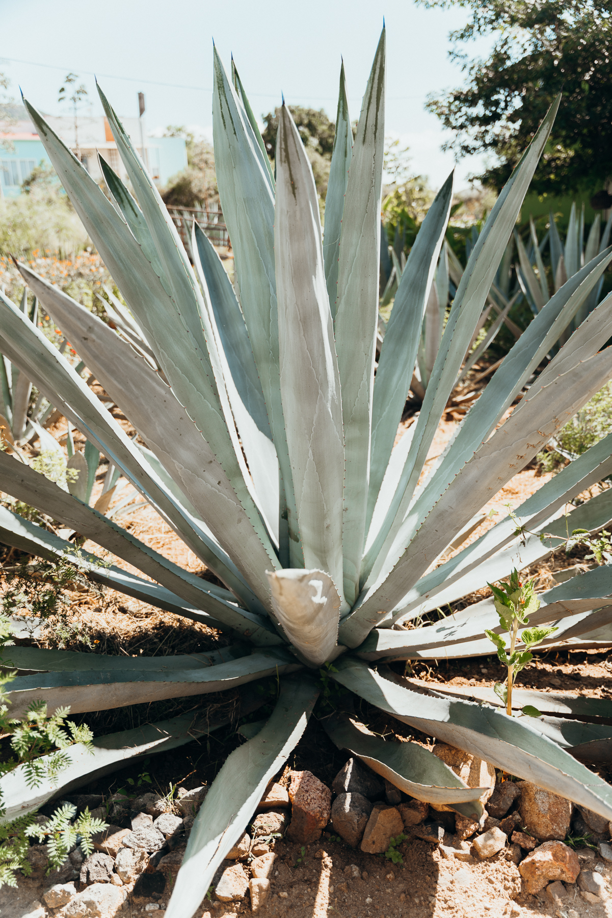La visita incluye un paseo por el hermosísimo vivero/jardín en donde uno conoce todos los tipos de agave que cultivan (hay vida más allá del Espadín que es el favorito principalmente porque crece más rápido) y se puede ver el proceso desde planticas bebés hasta agaves de décadas de edad.